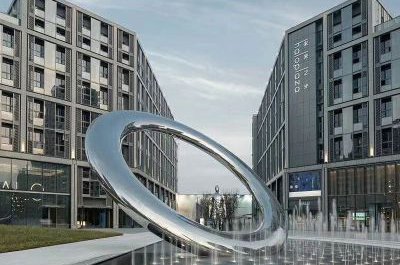 酒泉水帘圆环雕塑,直喷式旱地水景喷泉雕塑
